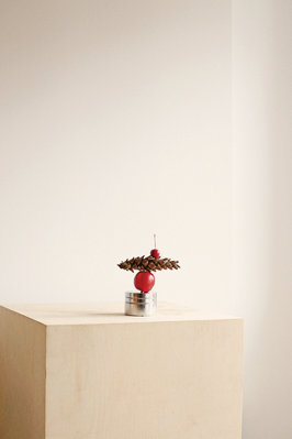 Fără roşu şi panglici sau poate doar puţin roşu prin intermediul unor mere pădureţe. Mult pin sculptural, a cărui prezenţă impunătoare îl scuteşte de nevoia altor companii.